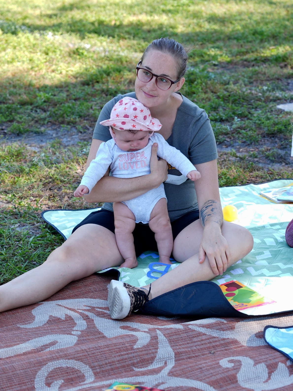 Some moms bring a stroller with big wheels (we’ll be outside on the lawn the entire time). A small snack is provided, but you might like to bring a water bottle for yourself or your little one.
